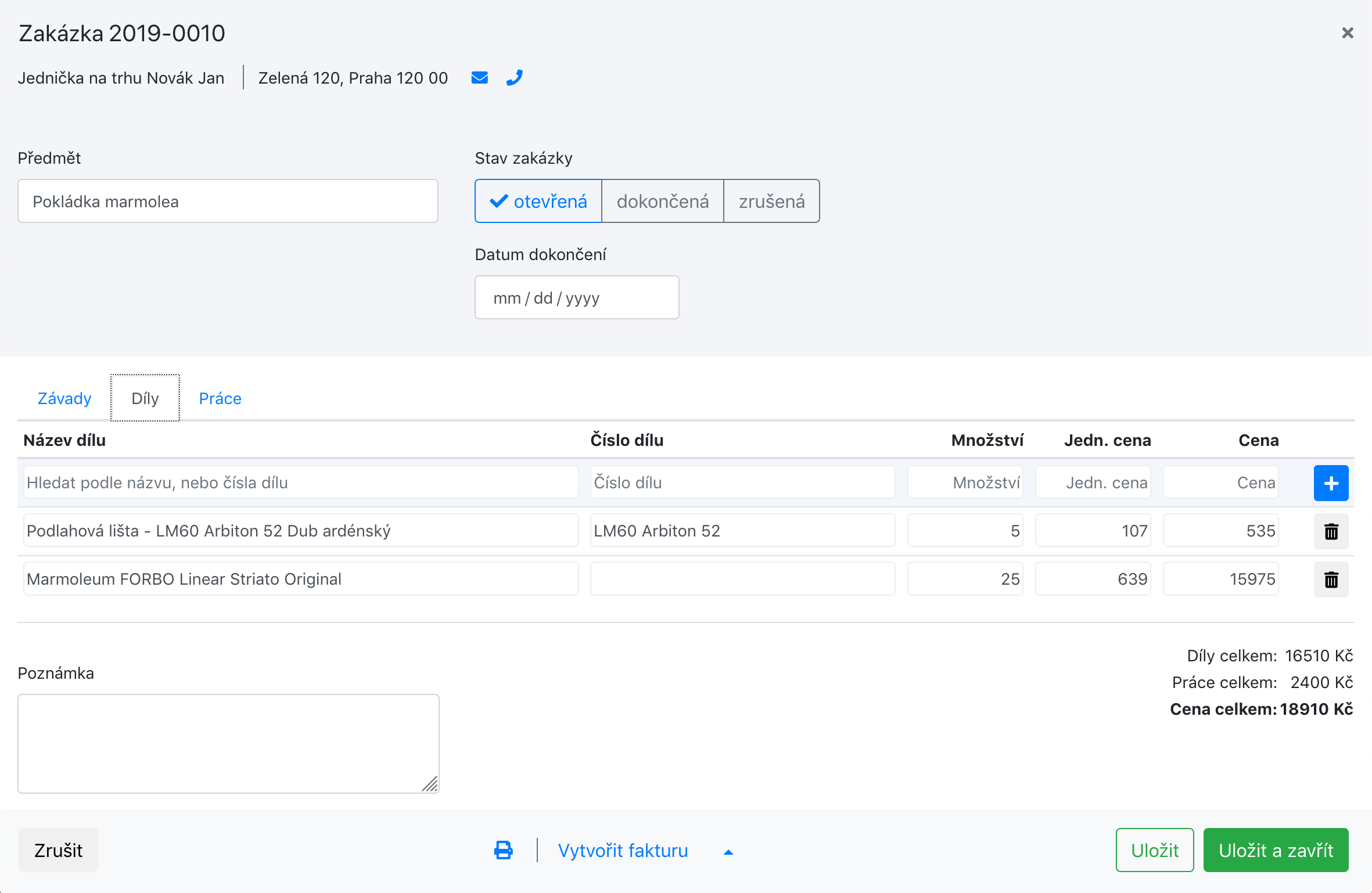- Vytvoření faktury ze zakázky jedním klikem